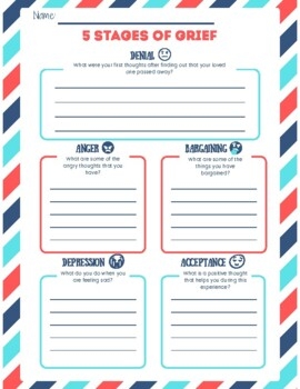 Depression: The fourth stage involves feelings of sadness, hopelessness, and despair. The worksheet can assist individuals in acknowledging and processing their feelings of depression. It can provide exercises and prompts to help individuals cope with their emotions and seek support from others during this challenging time.
