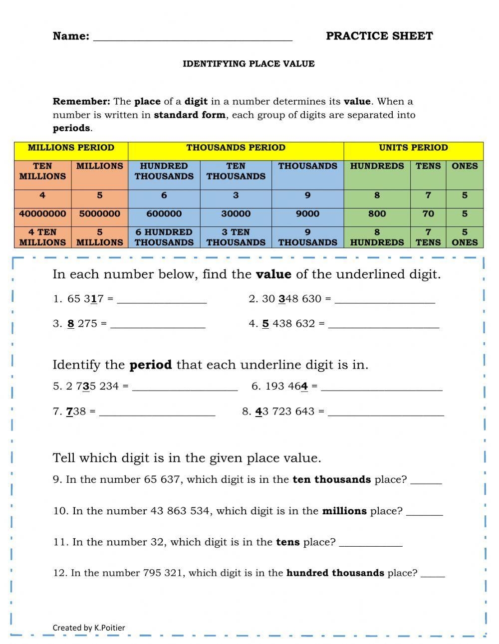 With the help of place value worksheets, students can strengthen their skills in recognizing the value of each digit in a number, as well as comparing and ordering numbers. These worksheets often include a variety of exercises, such as identifying the place value of specific digits, expanding numbers, and solving word problems related to place value.