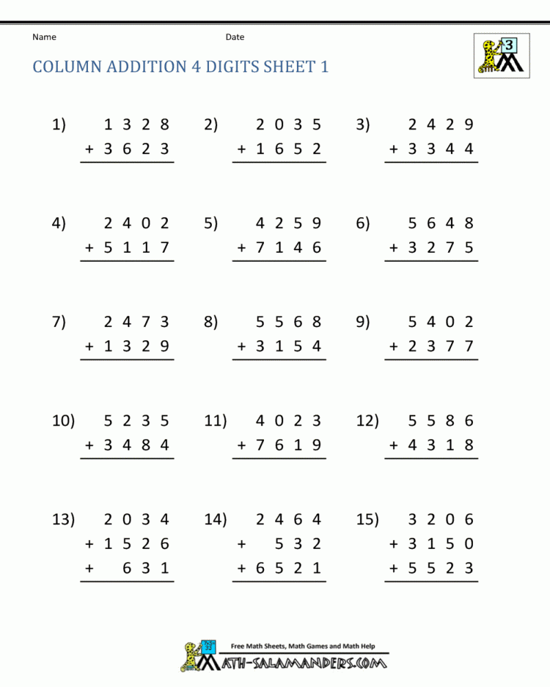 2. Reinforcement: By repeatedly solving addition problems, students reinforce the concepts and strategies they have learned in the classroom, leading to better retention and understanding of mathematical principles.