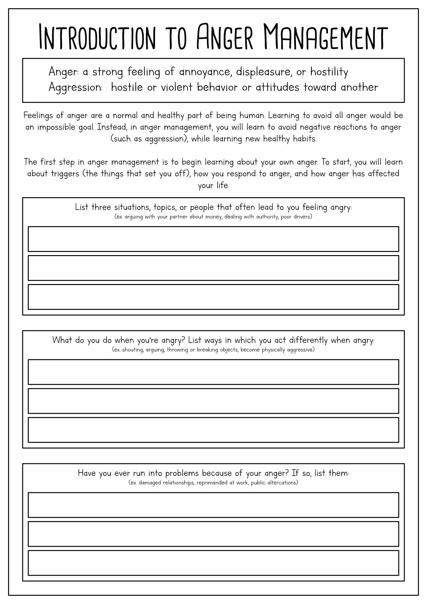 1. Identifying Triggers: The first step in managing anger is to identify what triggers it. Worksheets that prompt individuals to list situations, people, or events that make them angry can help in recognizing patterns and understanding the root causes of their anger.