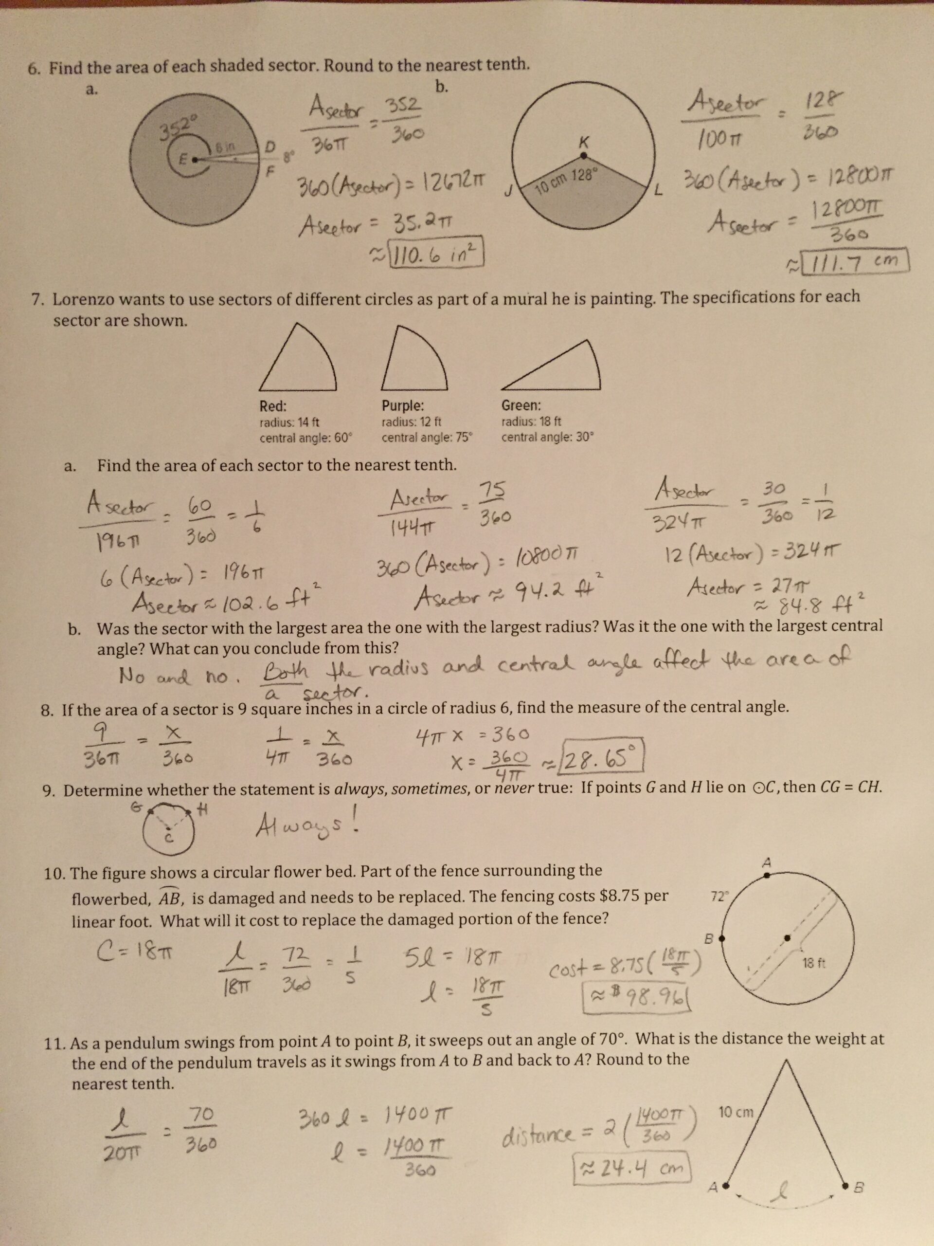 Furthermore, arc length sector area worksheets can be used as assessment tools to gauge students’ understanding of the material. Teachers can assign these worksheets as homework, classwork, or quizzes to assess students’ proficiency in calculating arc length and sector area. By analyzing students’ responses to the problems, teachers can identify areas of strength and weakness, provide targeted feedback, and tailor instruction to meet individual learning needs.