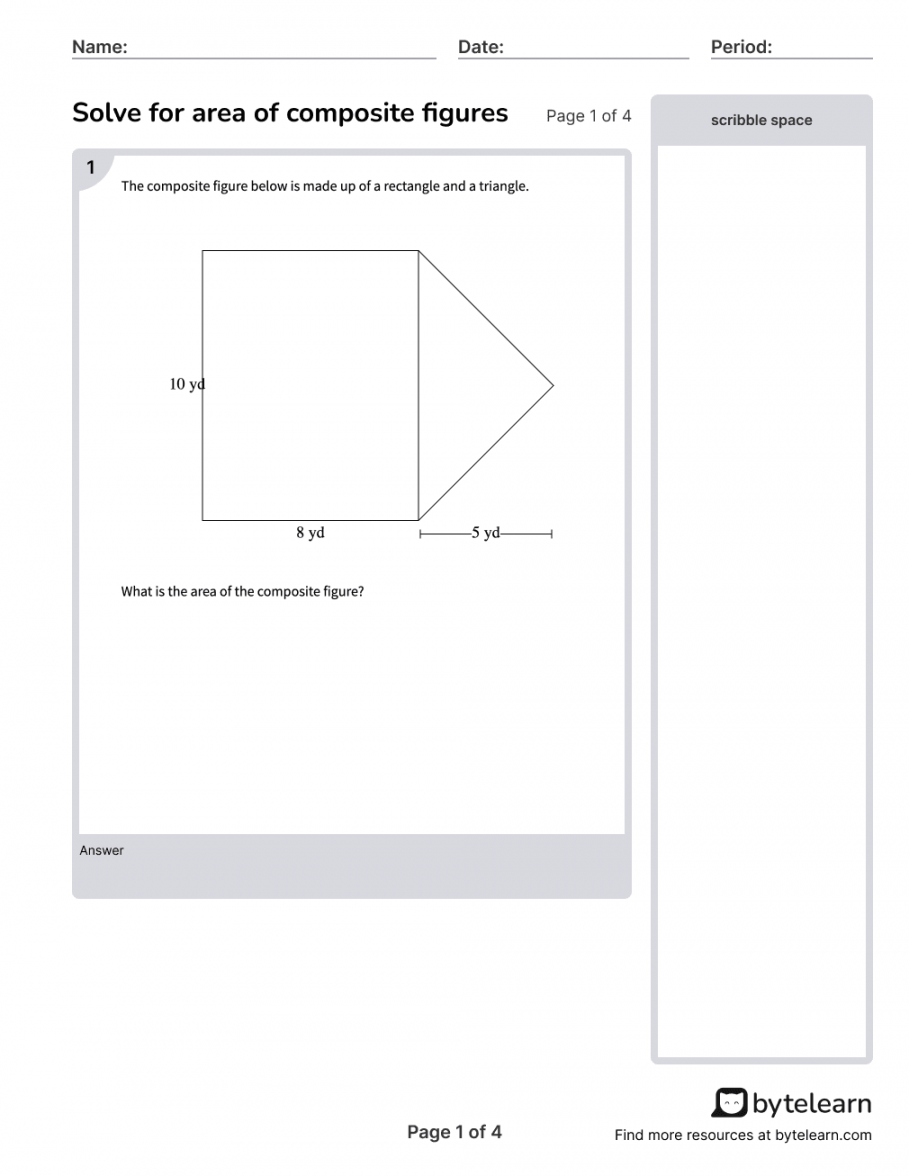 With the help of these worksheets, students can practice breaking down complex figures into simpler shapes, calculating the individual areas, and then adding them together to find the total area. This process not only helps students improve their math skills but also enhances their problem-solving abilities.
