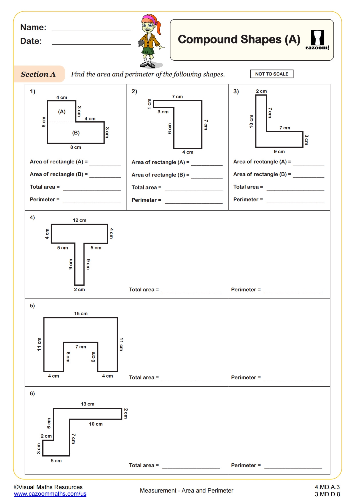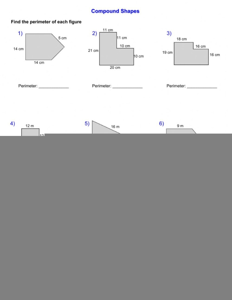 These worksheets typically include a variety of compound shapes such as rectangles, triangles, circles, and more. Students are required to break down the complex shapes into simpler components, calculate the area of each component, and then add or subtract the areas to find the total area of the entire shape.