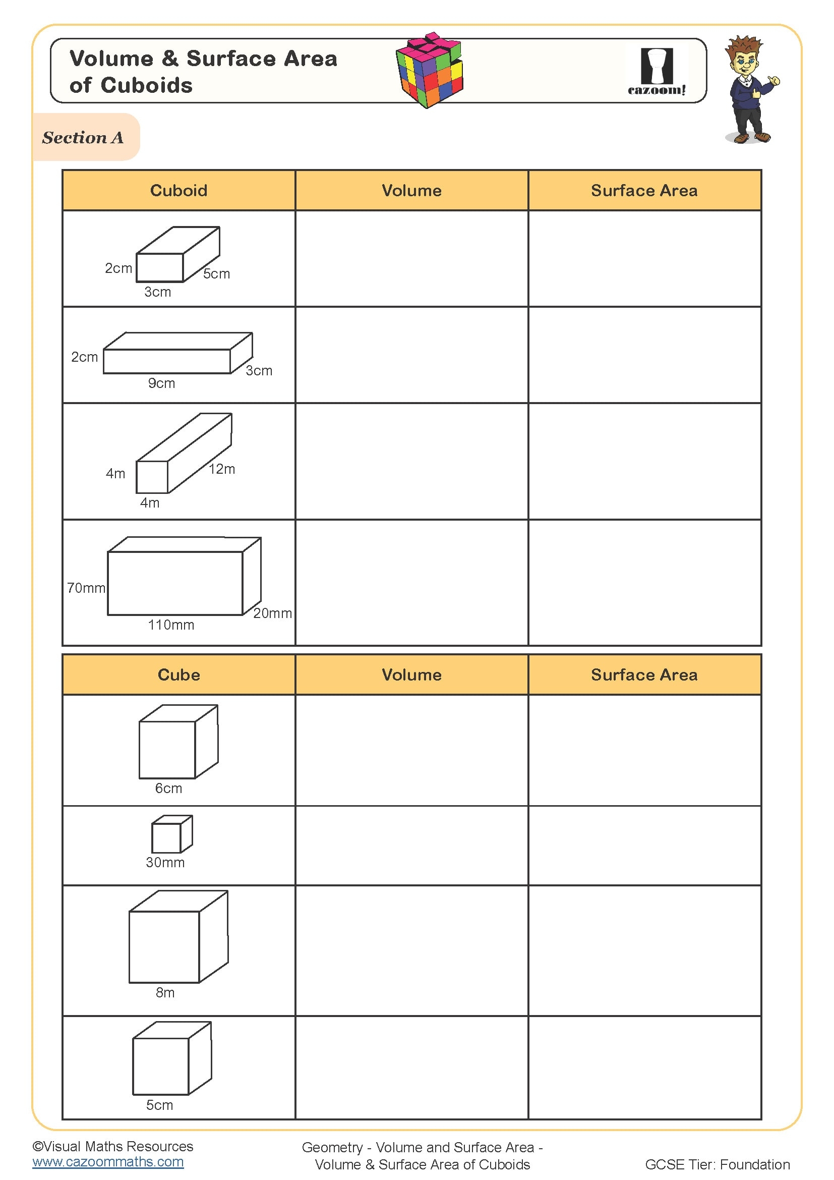 Furthermore, area, volume, and surface area worksheets can be tailored to suit different grade levels and learning objectives. Whether students are just starting to learn about these concepts or are looking to enhance their skills, there are worksheets available to meet their needs. Teachers can also use these worksheets as a form of assessment to gauge students’ understanding and progress.