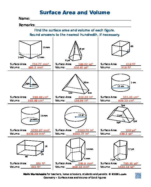 Area, volume, and surface area worksheets provide students with the opportunity to apply their knowledge and skills in calculating these measurements. By working through different problems and scenarios, students can develop a deeper understanding of how these concepts are used in real-world situations.