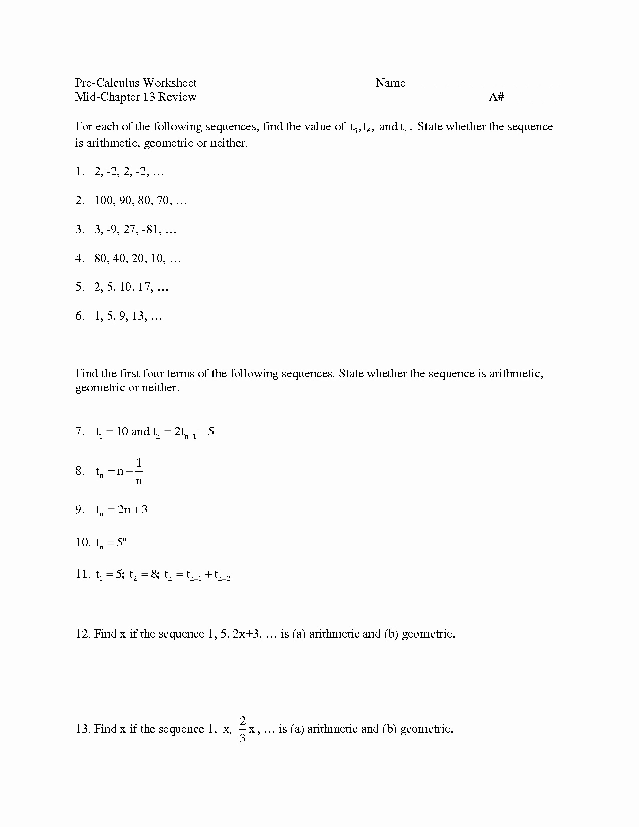 Arithmetic Sequence and Geometric Sequence Worksheet