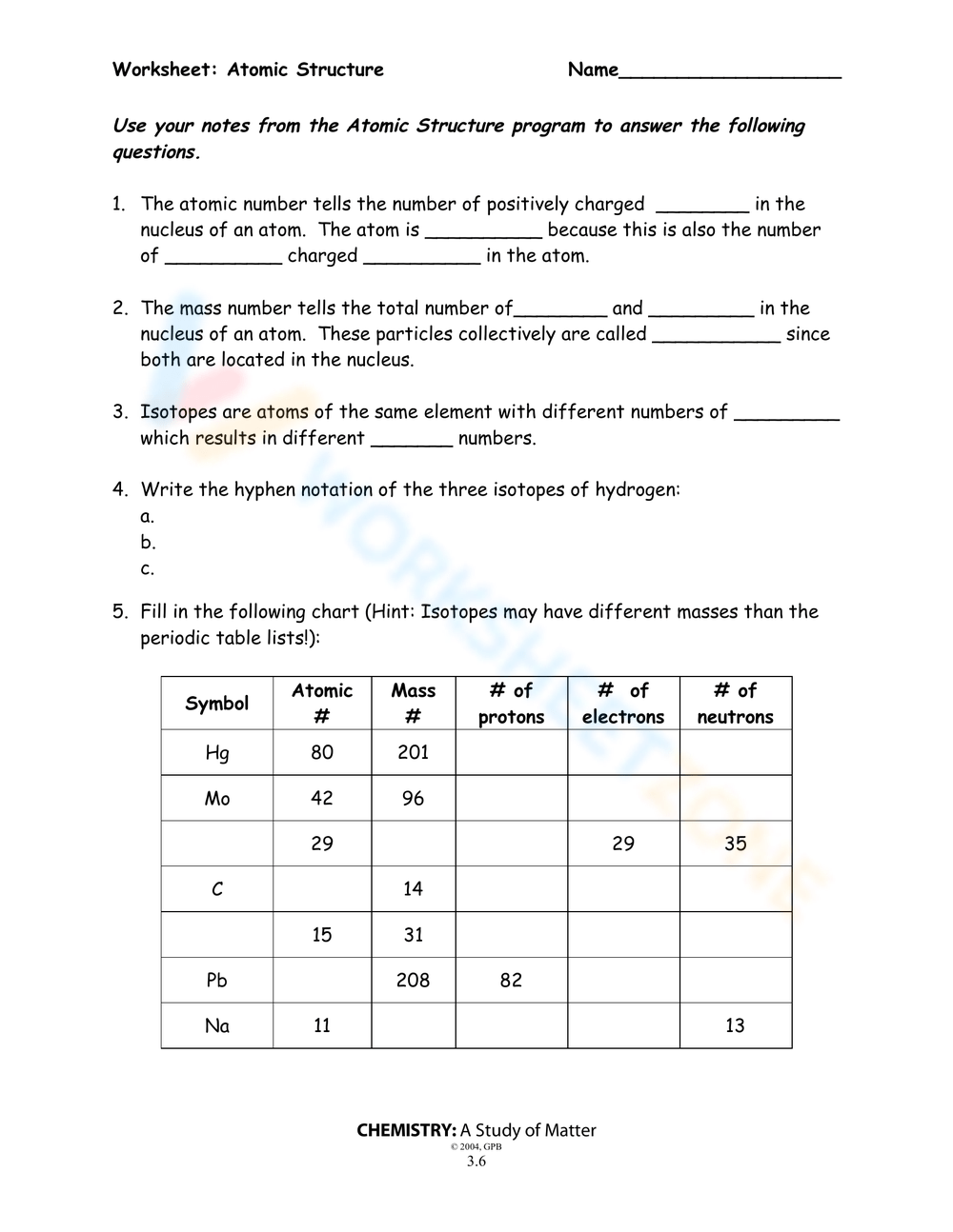 Some worksheets also include questions about isotopes, ions, and electron configurations, challenging students to apply their understanding of atomic structure to more complex problems. These types of activities can help students develop critical thinking skills and deepen their understanding of chemistry concepts.