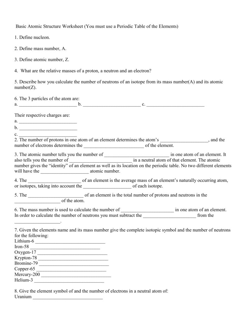 Understanding atomic structure is a fundamental concept in chemistry and physics. Atomic structure worksheets are useful tools for students to practice and reinforce their knowledge of atoms, elements, and the periodic table.