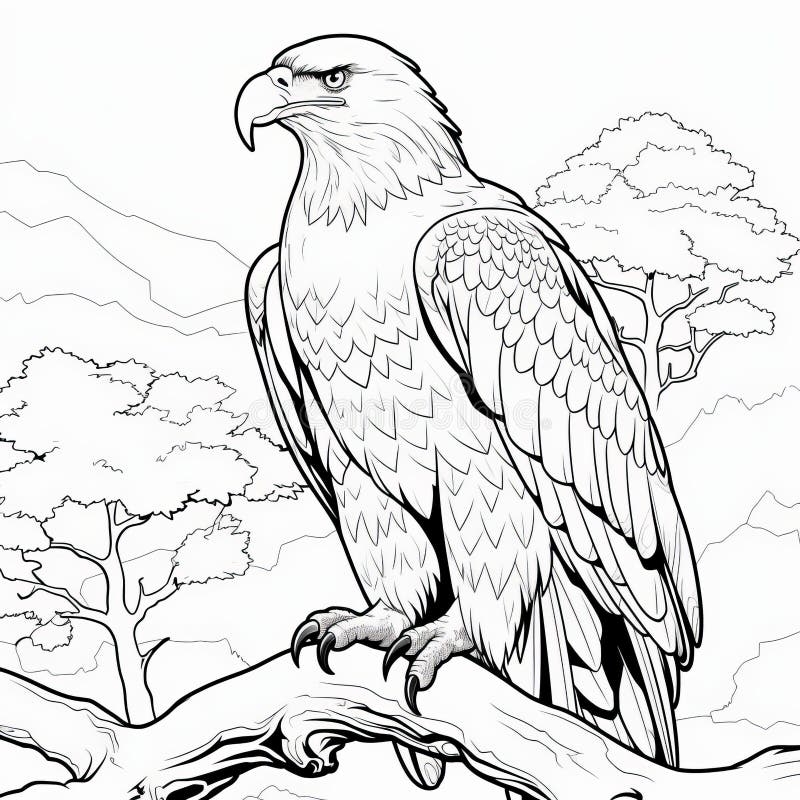 The bald eagle is a majestic bird of prey that is a symbol of strength and freedom. With its distinctive white head and tail contrasting with a dark brown body, the bald eagle is a striking sight in the wild. Children and adults alike can enjoy coloring pages featuring this iconic bird.