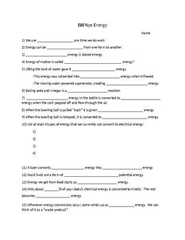 In conclusion, Bill Nye the Science Guy’s energy worksheet is a fun and educational resource for students to learn about the different forms of energy and their role in the world. By completing the activities on the worksheet, students can develop a deeper understanding of energy and how it affects our daily lives. Bill Nye’s engaging approach to science education makes learning about energy enjoyable and accessible for students of all ages.