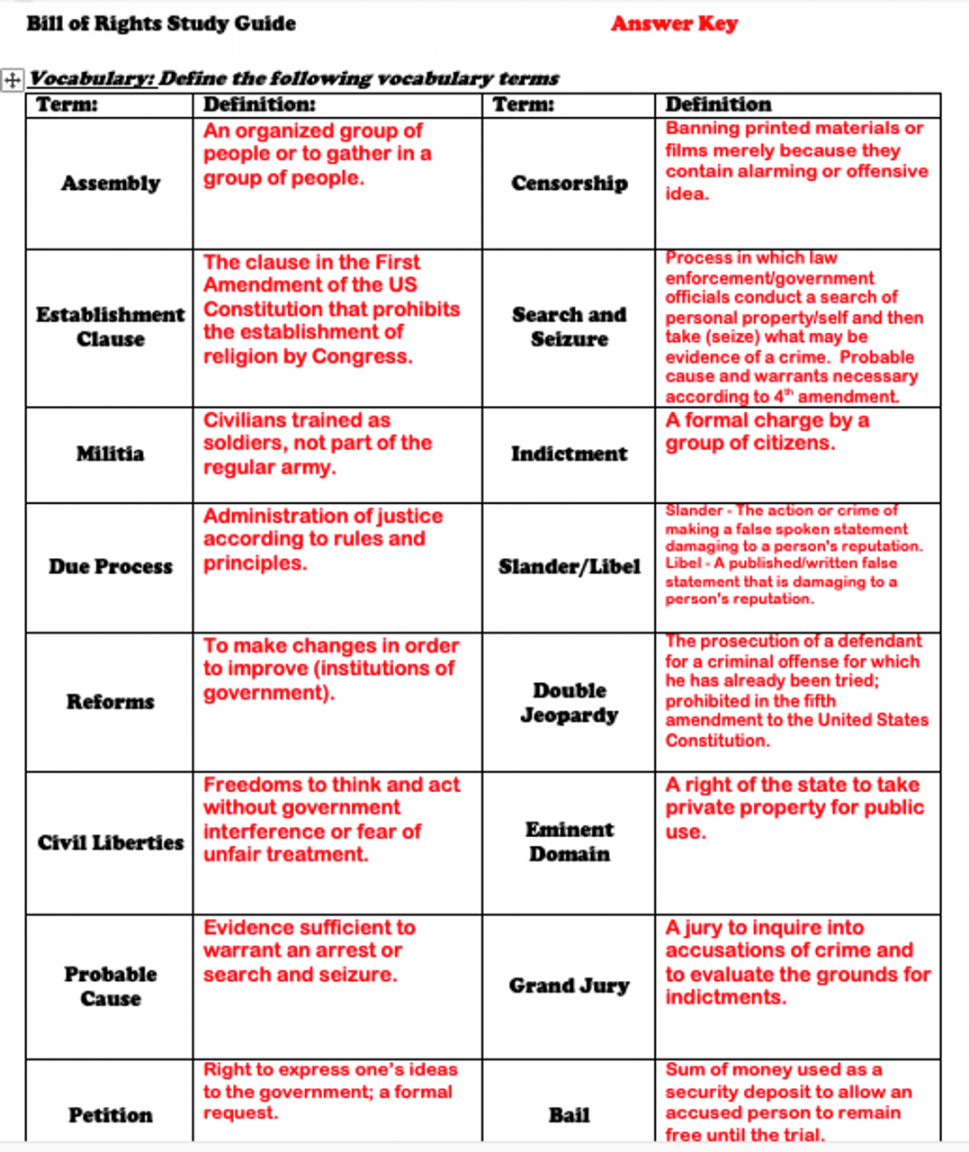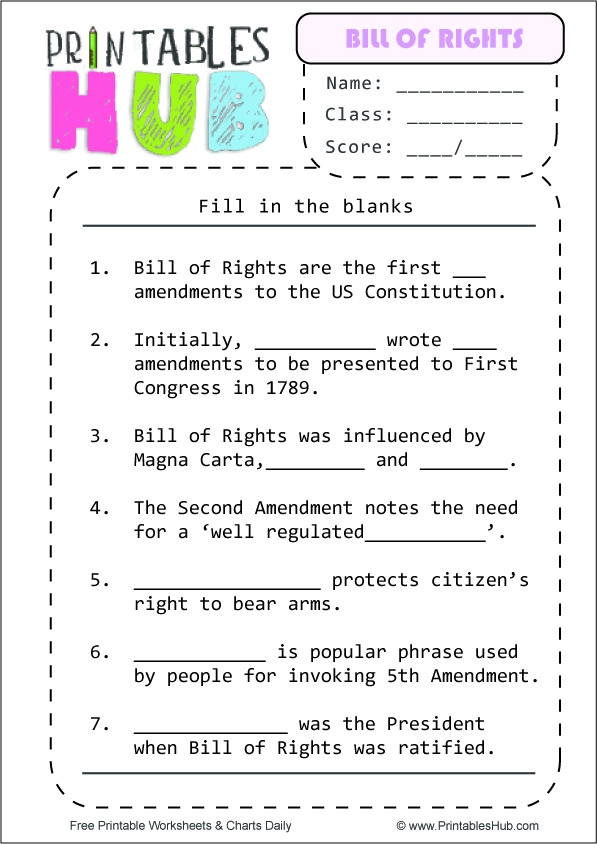 Bill of Rights Worksheet PDF