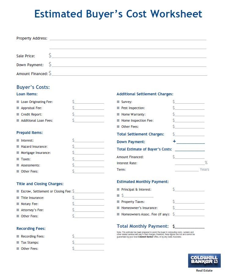 One tool that can help buyers estimate their closing costs is a worksheet specifically designed for this purpose. This worksheet breaks down all the potential costs associated with closing on a home, giving buyers a clear picture of what to expect and how much they need to budget for.