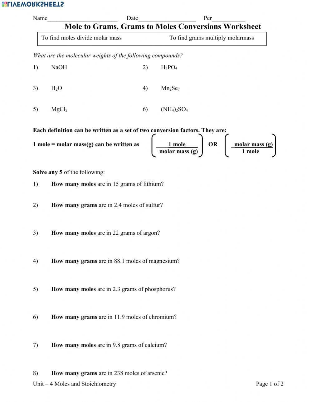 When studying chemistry, one of the fundamental concepts that students need to grasp is the concept of moles. A mole is a unit of measurement used in chemistry to express amounts of a chemical substance. It represents a specific number of atoms, molecules, ions, or other entities. To help students practice and reinforce their understanding of moles, teachers often provide them with worksheets that involve calculating moles.