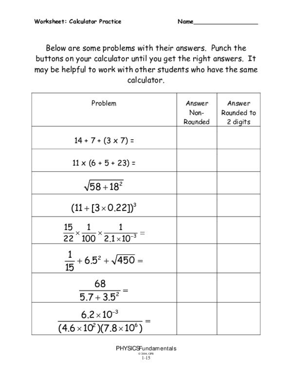 By regularly practicing with these worksheets, students can become more comfortable using a calculator and develop a better understanding of how to solve math problems efficiently and accurately. This can be especially helpful for students who struggle with mental math or who need extra practice with certain concepts.