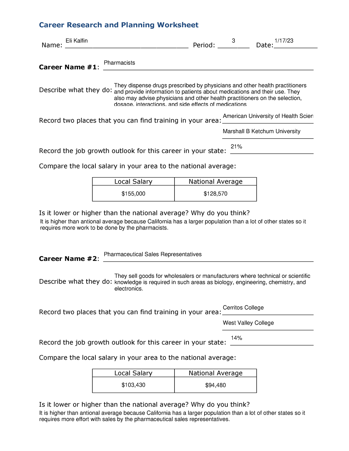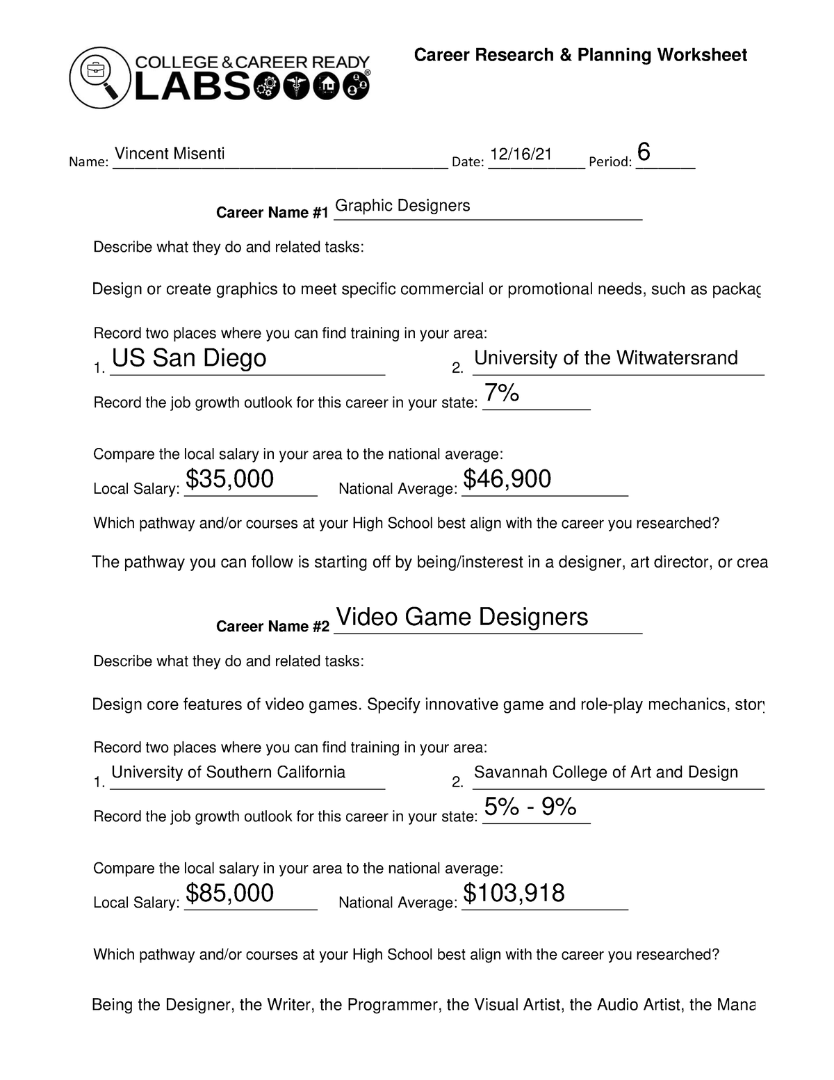 Career Research Worksheet