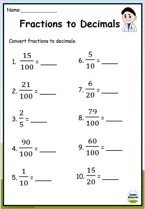 When it comes to learning about fractions and decimals, it’s important for students to understand how to convert between the two. One way to practice this skill is through the use of worksheets that provide exercises in changing fractions to decimals. These worksheets can help reinforce the concept and improve students’ understanding of how fractions and decimals are related.