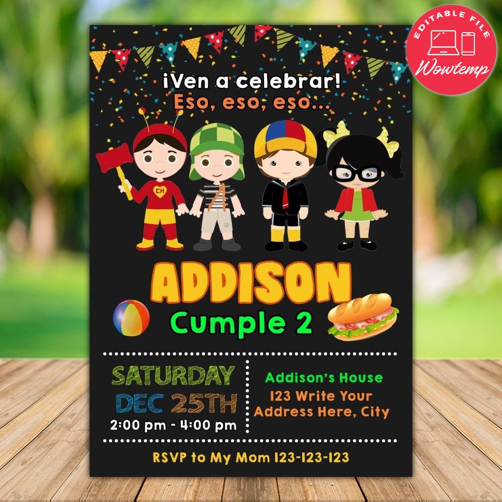 With our Chavo del Ocho invitation template, you can create a unique and charming invitation that will delight your guests and set the stage for a fun and festive gathering inspired by this classic television show. So why wait? Start designing your Chavo del Ocho invitation today!