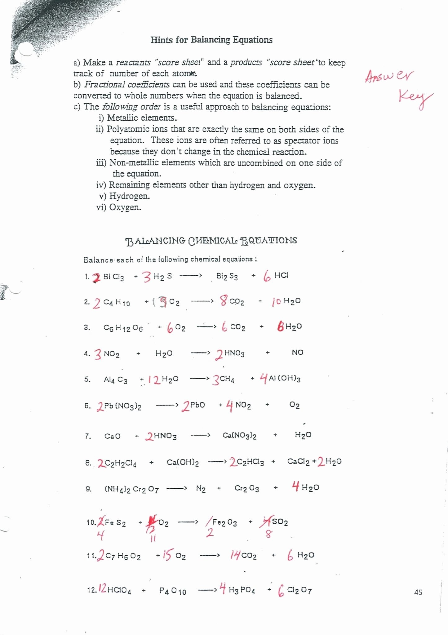 Furthermore, using a worksheet with answer key provides students with a structured approach to learning and allows them to track their progress over time. By completing multiple worksheets and checking their answers, students can see their improvement and gain confidence in their ability to balance chemical equations.