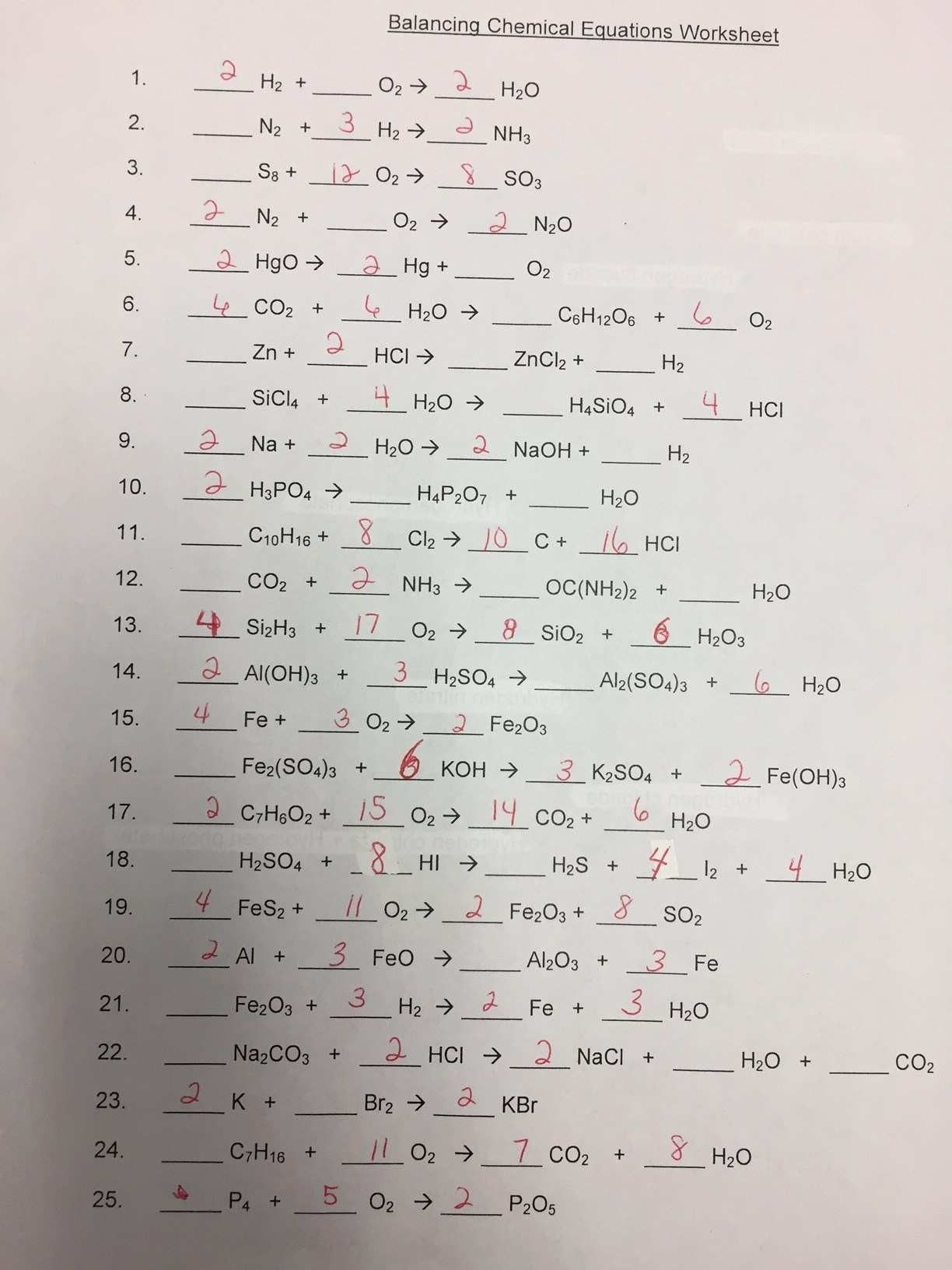 Chemistry worksheet balancing equations is an essential skill that students must master in order to understand chemical reactions. Balancing equations involves making sure that the number of atoms of each element is the same on both sides of the equation. This process helps to demonstrate the law of conservation of mass, which states that matter cannot be created or destroyed in a chemical reaction.
