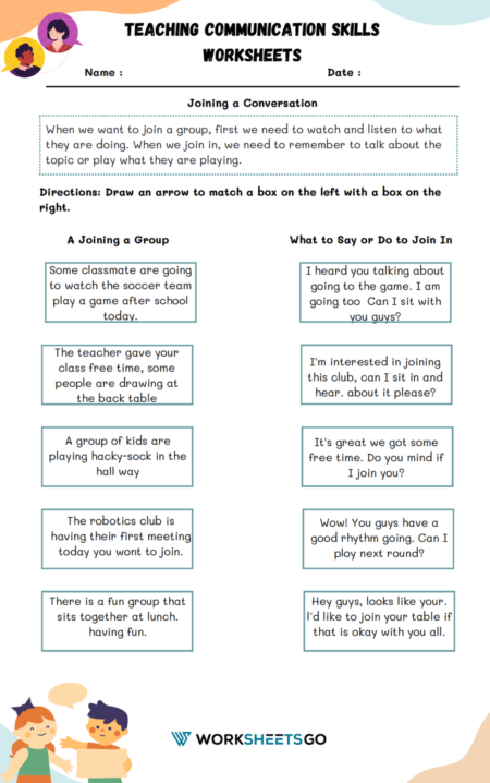 2. Conversation Starters: Worksheets with conversation starters can help children initiate and maintain conversations with others. These activities can help children improve their communication skills, active listening abilities, and turn-taking in conversations.