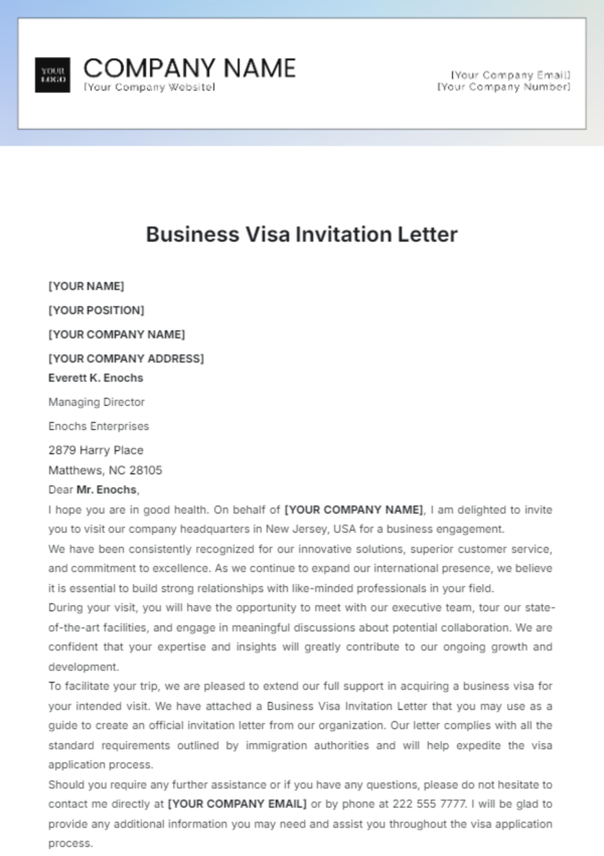 In conclusion, a well-written invitation letter is a crucial document for obtaining a business visa to China. By following the template provided in this article and ensuring that all necessary information is included, you can increase your chances of a successful visa application. Good luck with your business endeavors in China!