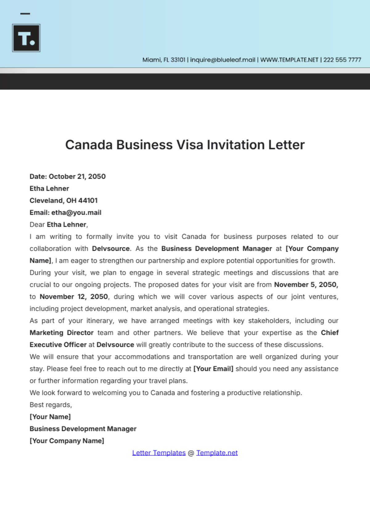 During your visit, you will be meeting with our team to discuss [State agenda, e.g., potential partnership opportunities, project collaboration, etc.]. We believe that your visit will be beneficial for both parties and will contribute to strengthening our business relationship.