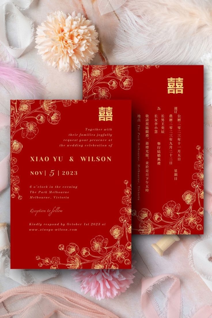 When it comes to choosing a Chinese wedding invitation card template, there are a few key elements to keep in mind. Traditional Chinese designs often feature red and gold colors, which symbolize luck and prosperity. These colors are believed to bring good fortune to the couple on their wedding day.
