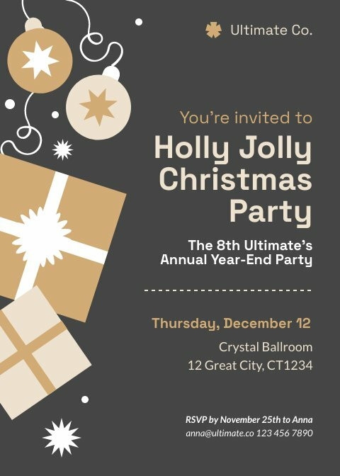 4. Elegant Festivities: For a touch of sophistication, choose this elegant template. With gold accents and a touch of glamour, this invitation is perfect for a company party that exudes class and style.