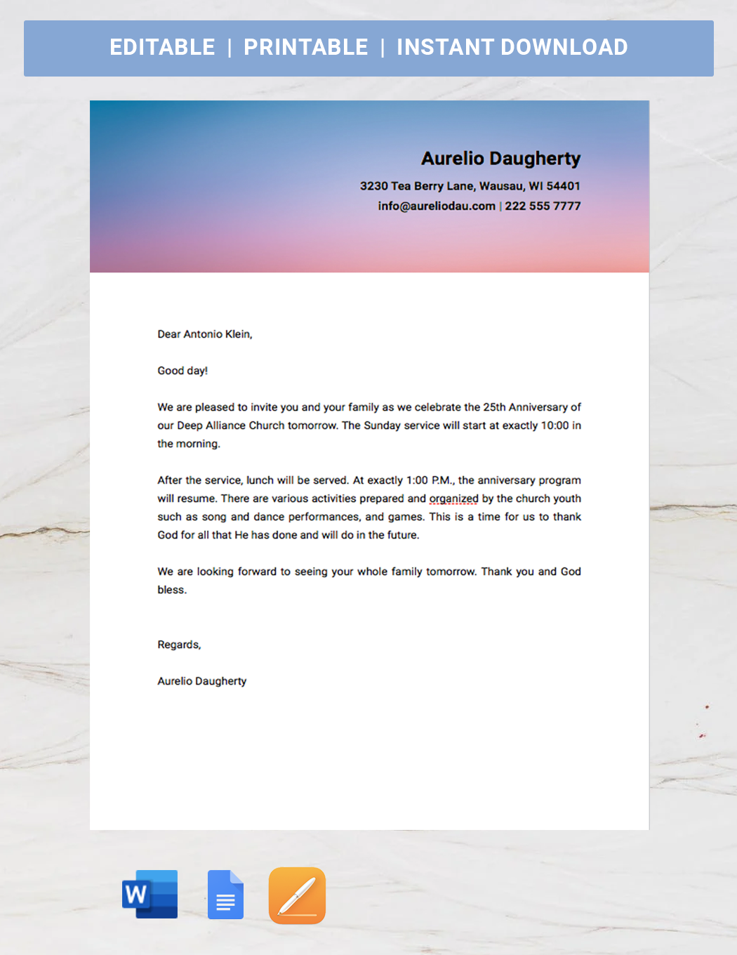 Once you have selected and customized your church anniversary invitation template, it is time to distribute it to the intended recipients. You can print physical copies to hand out during church services, or send digital versions via email or social media to reach a wider audience. Encourage members to RSVP so you can plan accordingly for the celebration and ensure a successful event.