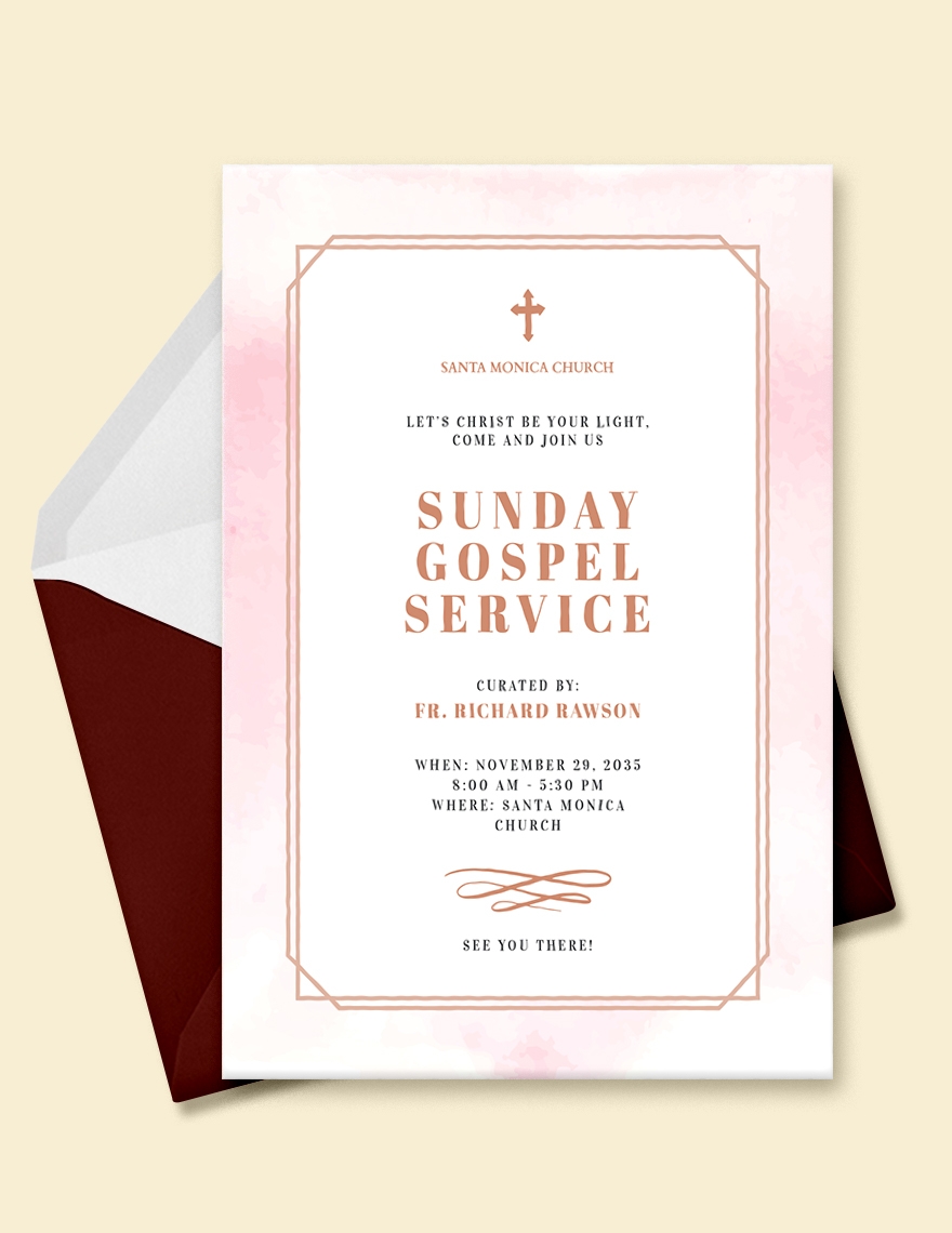 Are you looking for a simple and elegant way to invite people to your church service? Look no further! Our church service invitation template is the perfect solution. With its clean design and customizable features, you can easily create a beautiful invitation that will inspire others to join you in worship.