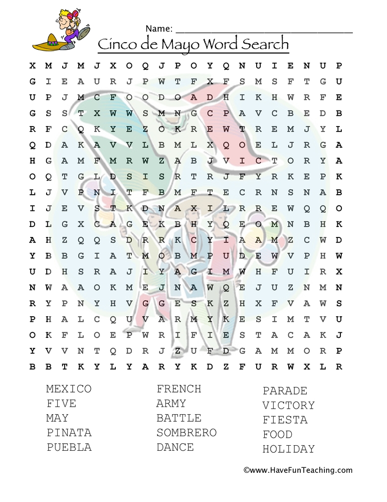 Another common activity is the word search, which can help students familiarize themselves with key vocabulary related to Cinco de Mayo. Words like “fiesta,” “mariachi,” and “Mexico” may be hidden within the puzzle for students to find and circle.