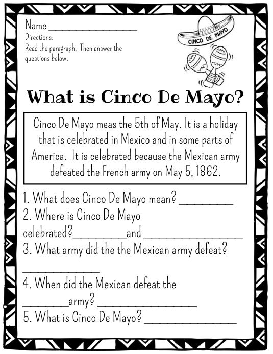 Some worksheets may also include writing prompts or trivia questions about the history of Cinco de Mayo. This can be a great way to engage students in research and critical thinking while learning about the holiday.