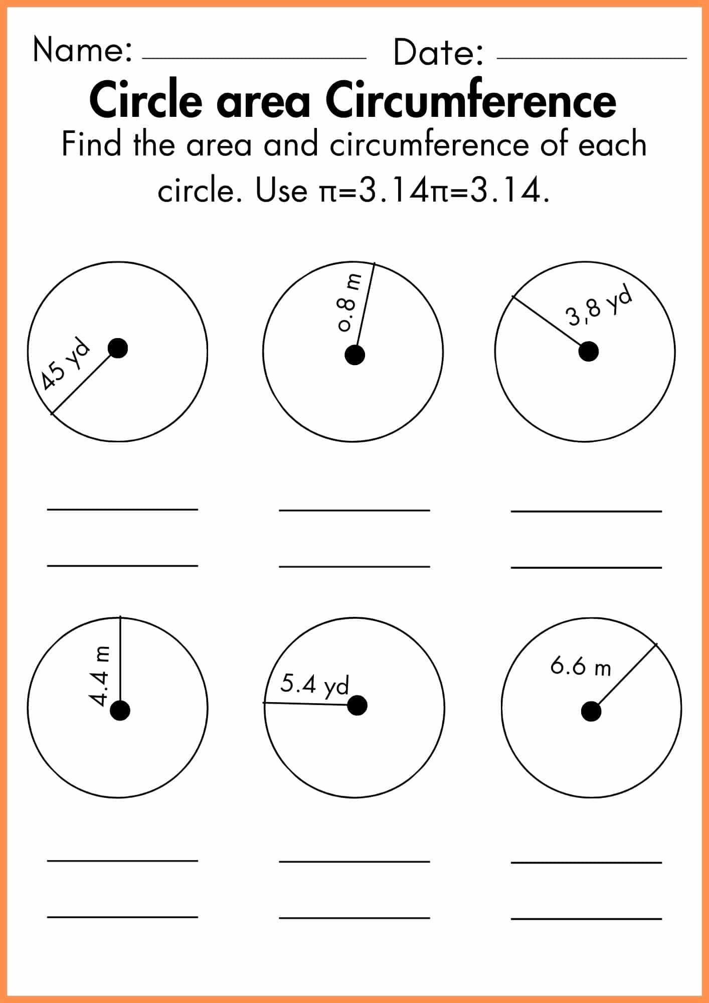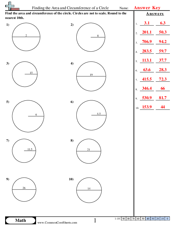 Circle Area Circumference Worksheet