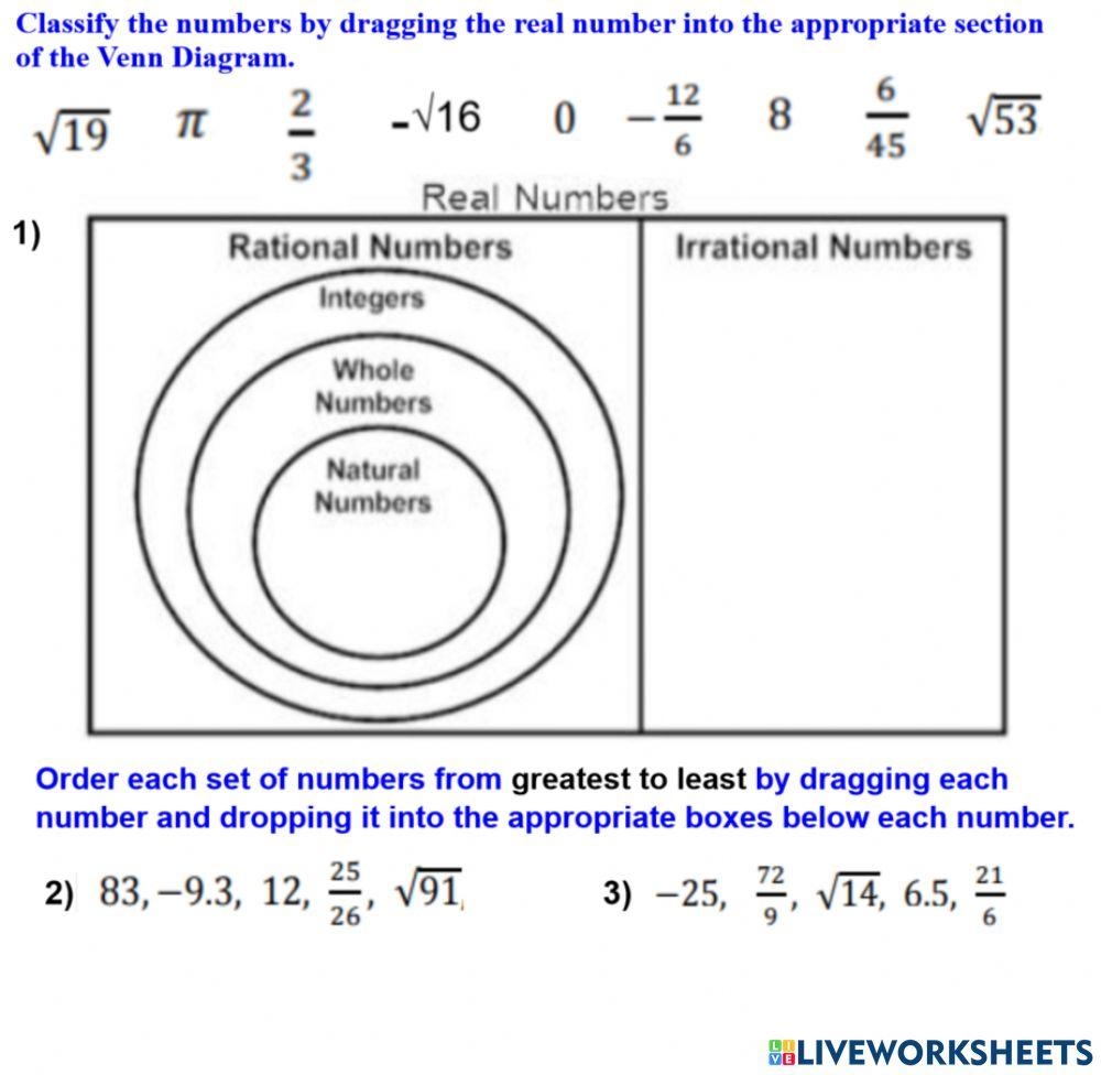 By working through a classifying real numbers worksheet, students can improve their understanding of concepts such as rational numbers, irrational numbers, integers, whole numbers, and natural numbers. This practice allows them to recognize patterns and relationships between different types of numbers, leading to a deeper comprehension of the number system.