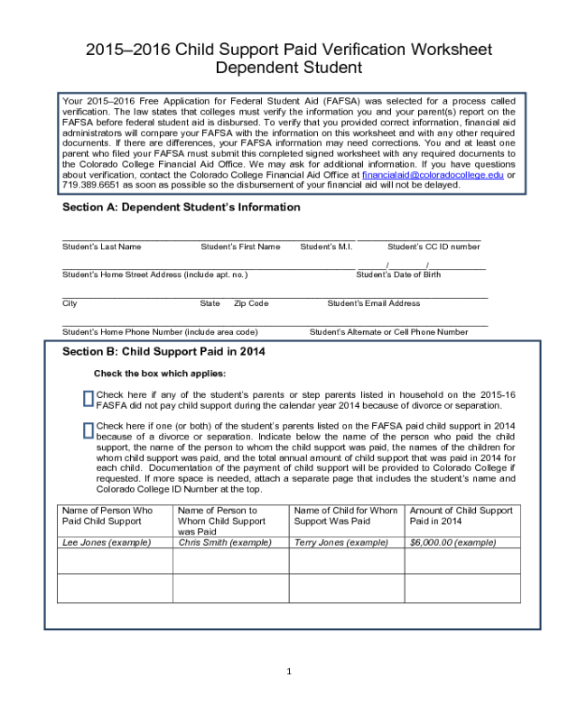 Colorado Child Support Worksheet