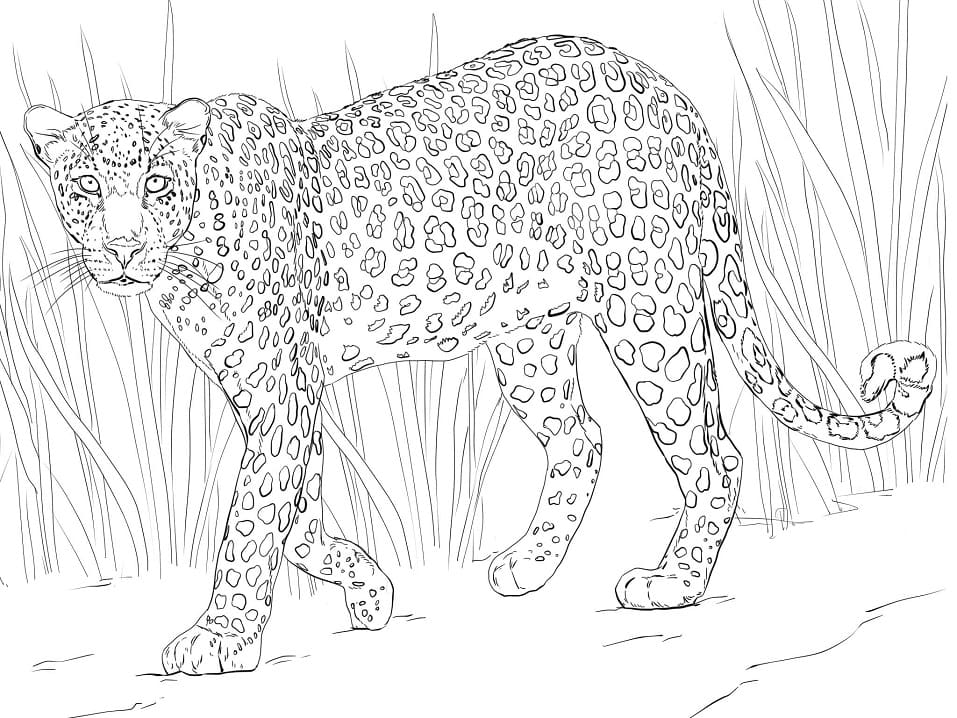 Another common theme for leopard coloring pages is a full-body illustration of a leopard in its natural habitat, such as a lush jungle or savannah. This can provide a more expansive canvas for coloring and allow children to get creative with background elements like trees, rocks, and other wildlife that may share the leopard’s environment.