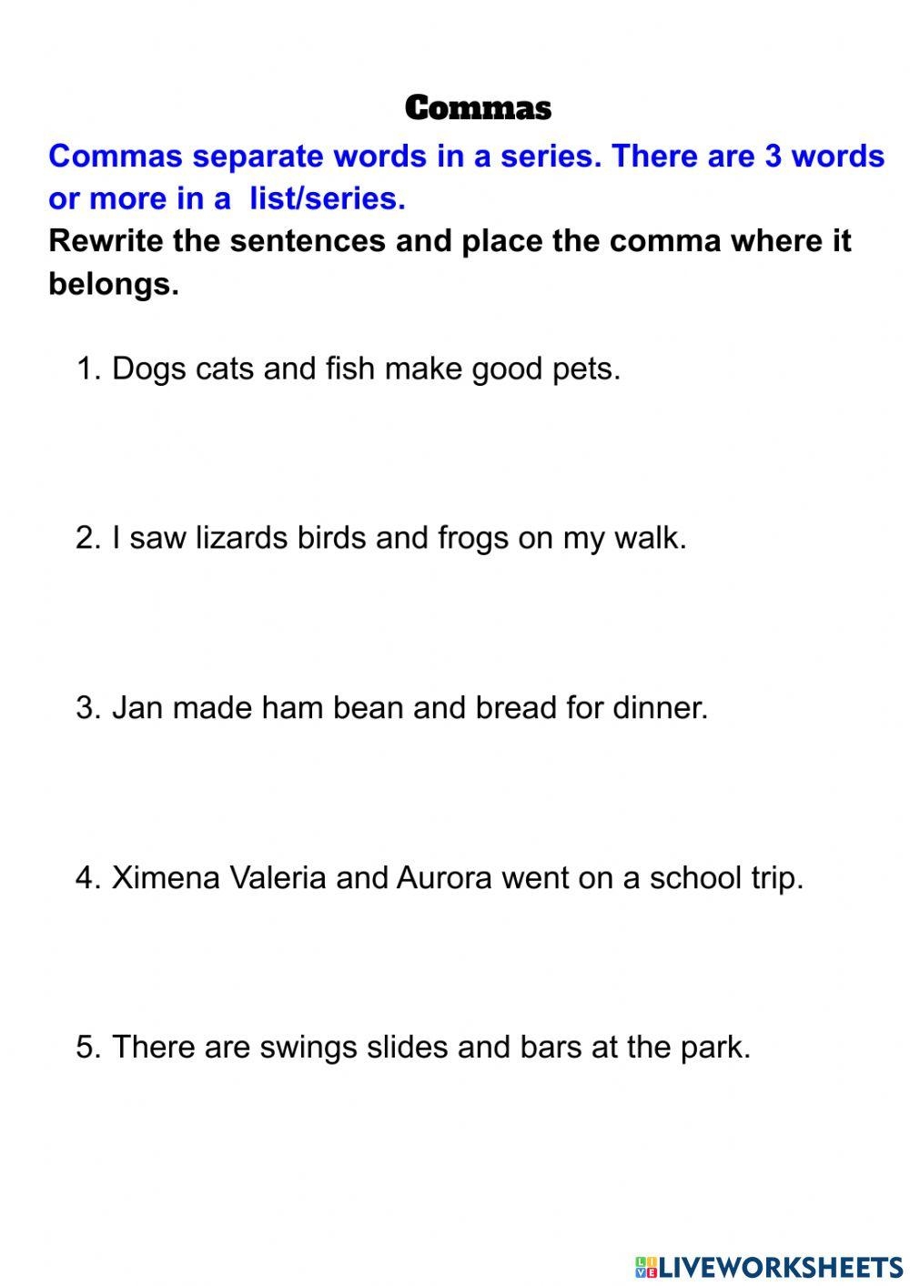 Commas Exercise For Grade 3 Live Worksheets Worksheets Library