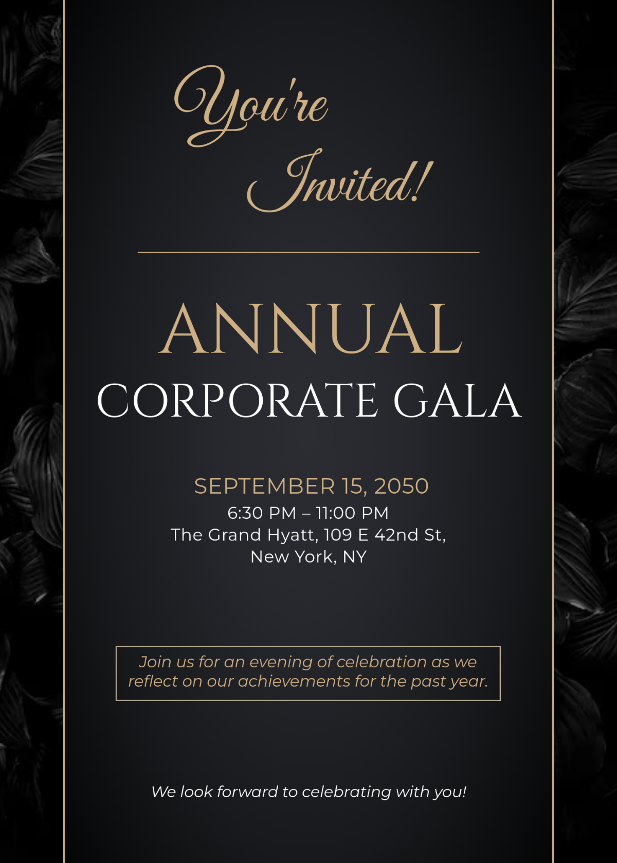 Don’t settle for generic, uninspired event invitations. Use our company event invitation template to create invitations that will impress your guests and set the stage for a memorable event. Your guests will appreciate the attention to detail and professionalism of your invitations, and you’ll set the tone for an event that they won’t soon forget.