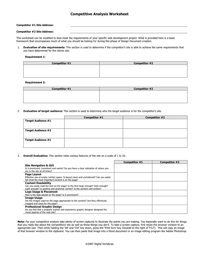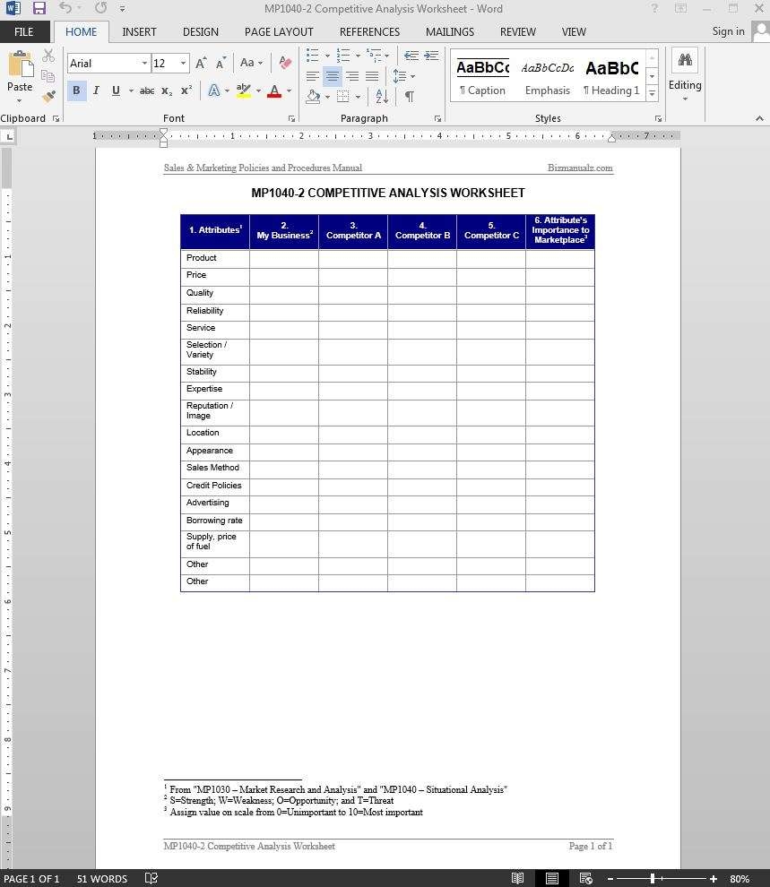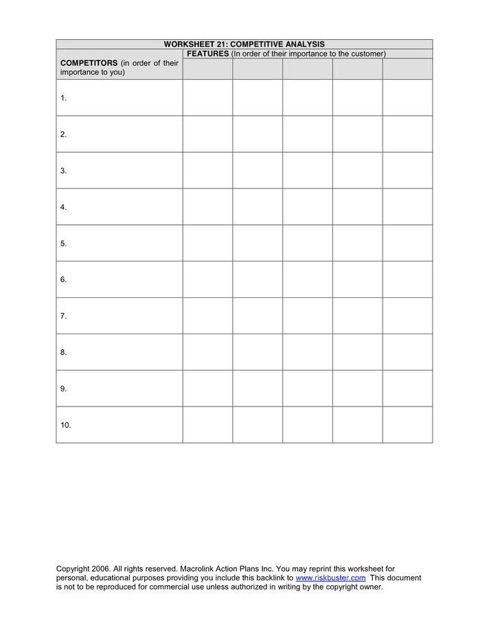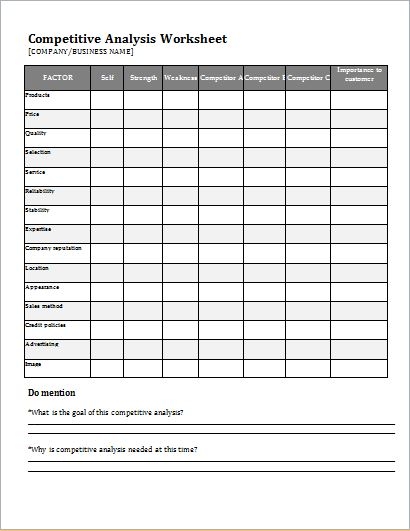 Competitive Analysis Worksheet In Word And Pdf Formats