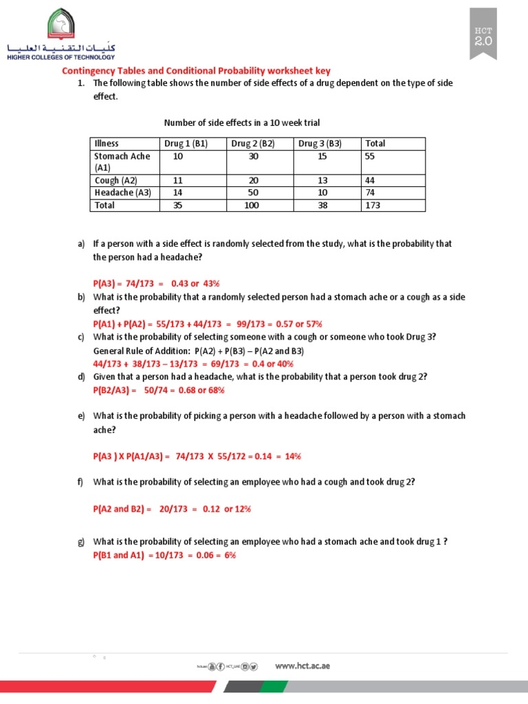 5b Contingency Tables And Conditional Probability Answer Key PDF