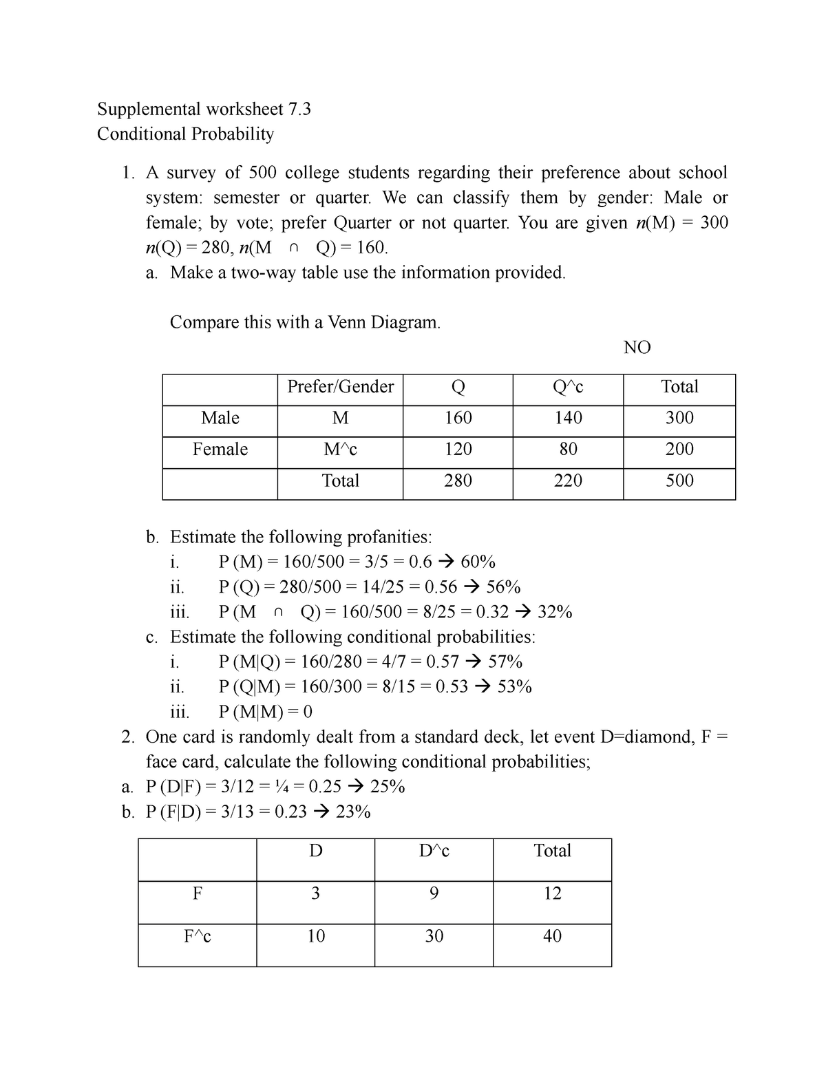 Conditional Probability Worksheet