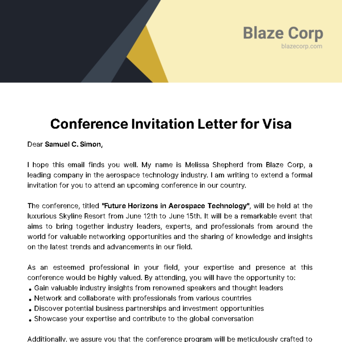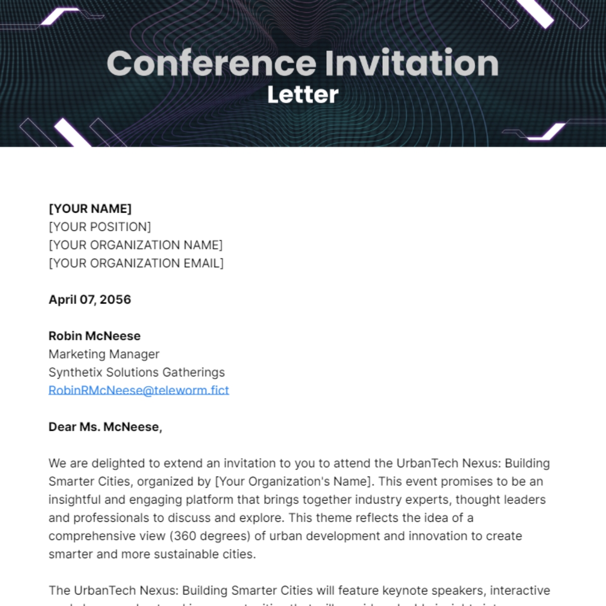 Thank you for considering our invitation, and we hope to see you at the conference. Your presence will greatly enrich the discussions and help us achieve our shared goals of advancing knowledge and innovation in [Industry].