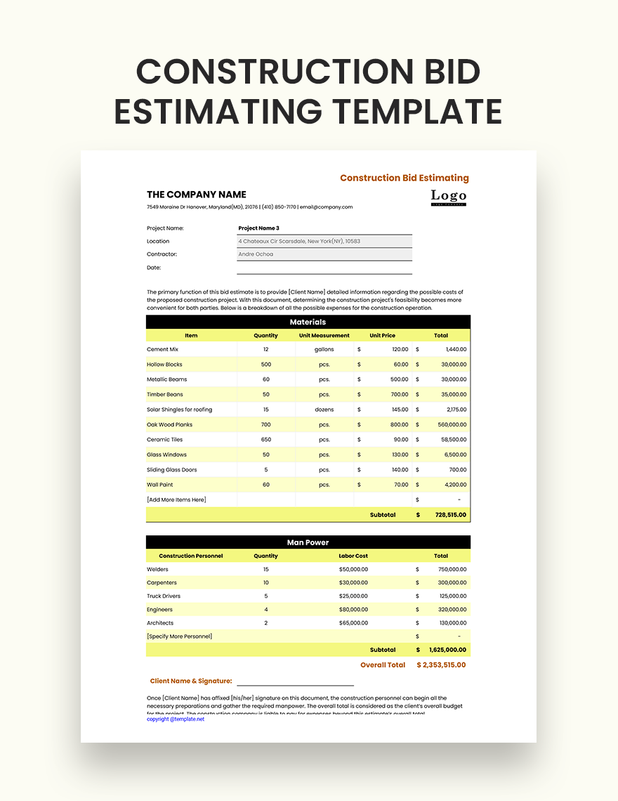 Here are a few key elements that should be included in a construction invitation to bid template:
