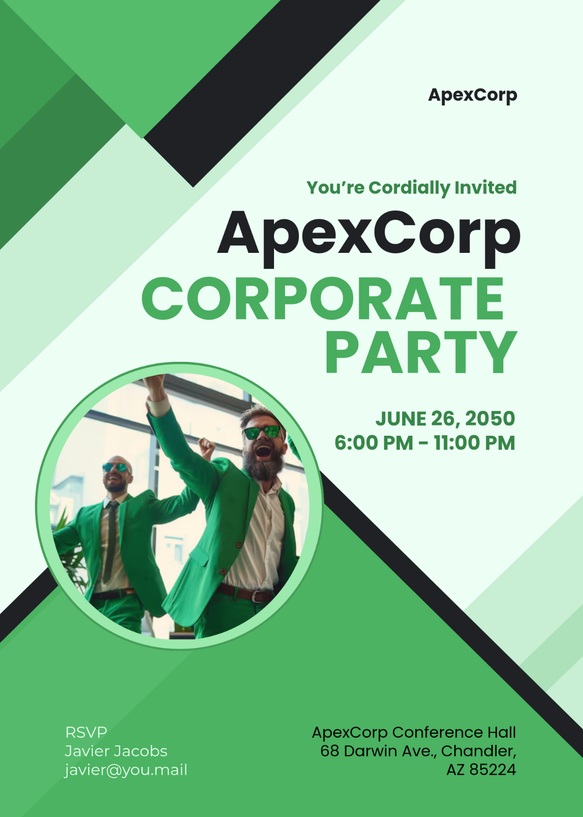Don’t waste time and money on expensive graphic designers or printing services. Our corporate party invitation template is ready to use and can be easily customized with just a few clicks. Simply fill in the details of your event, save the file, and send it out to your guest list. It’s that easy!