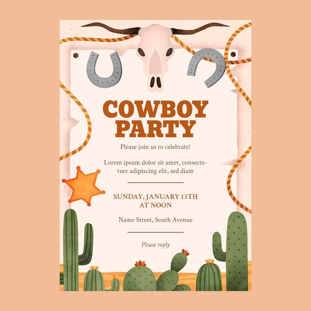 Choose from a variety of templates, including vintage-inspired designs, modern takes on the cowboy theme, and fun, whimsical options for kids’ parties. Whether you prefer a more traditional look or want to add a playful twist to your invitations, we have something for everyone.