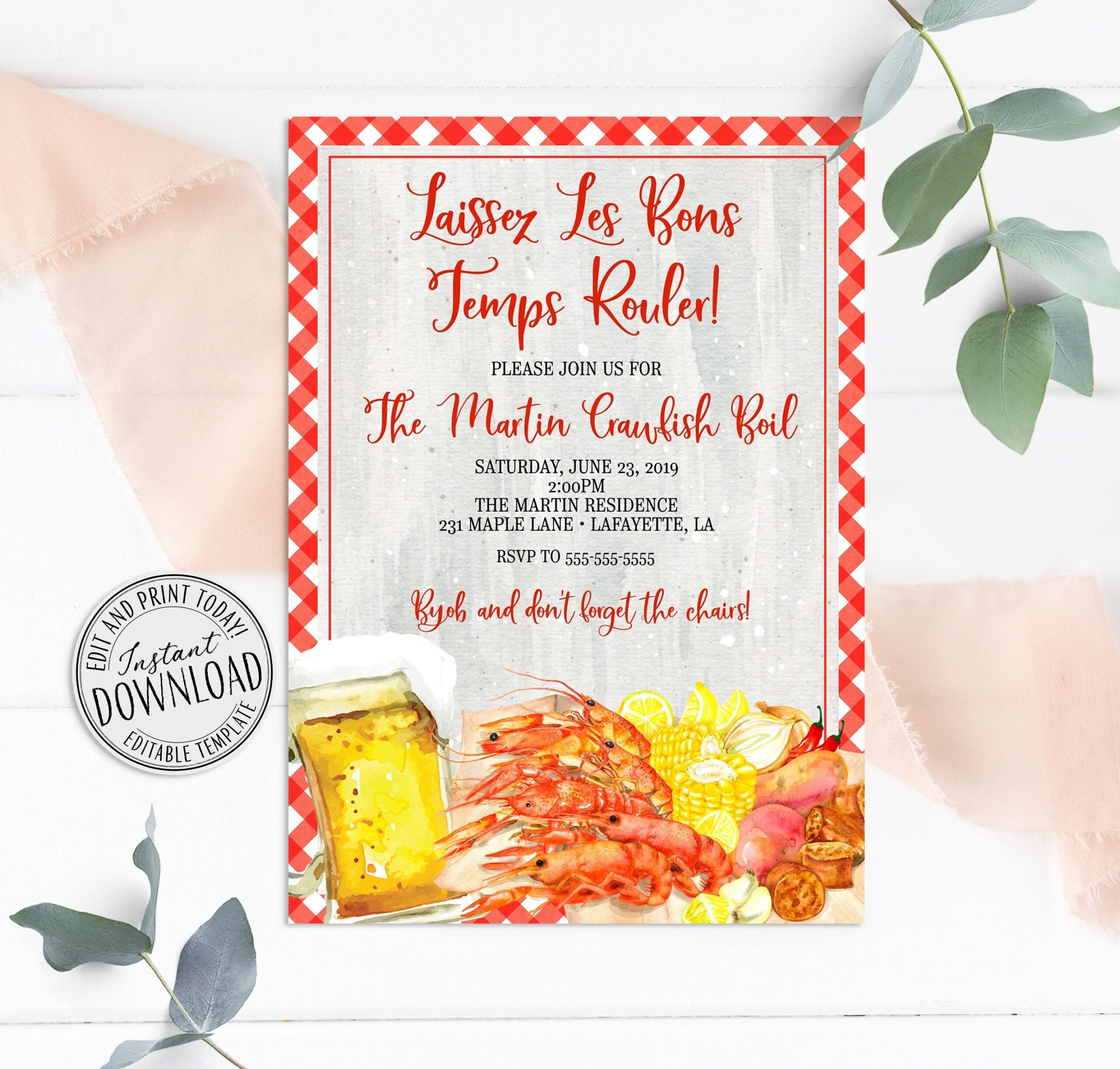 Don’t waste time and money on expensive invitations when you can use our free template to create personalized and professional-looking invites in minutes. Your guests will be impressed with the attention to detail and you’ll be able to focus on the more important aspects of planning your crawfish boil.
