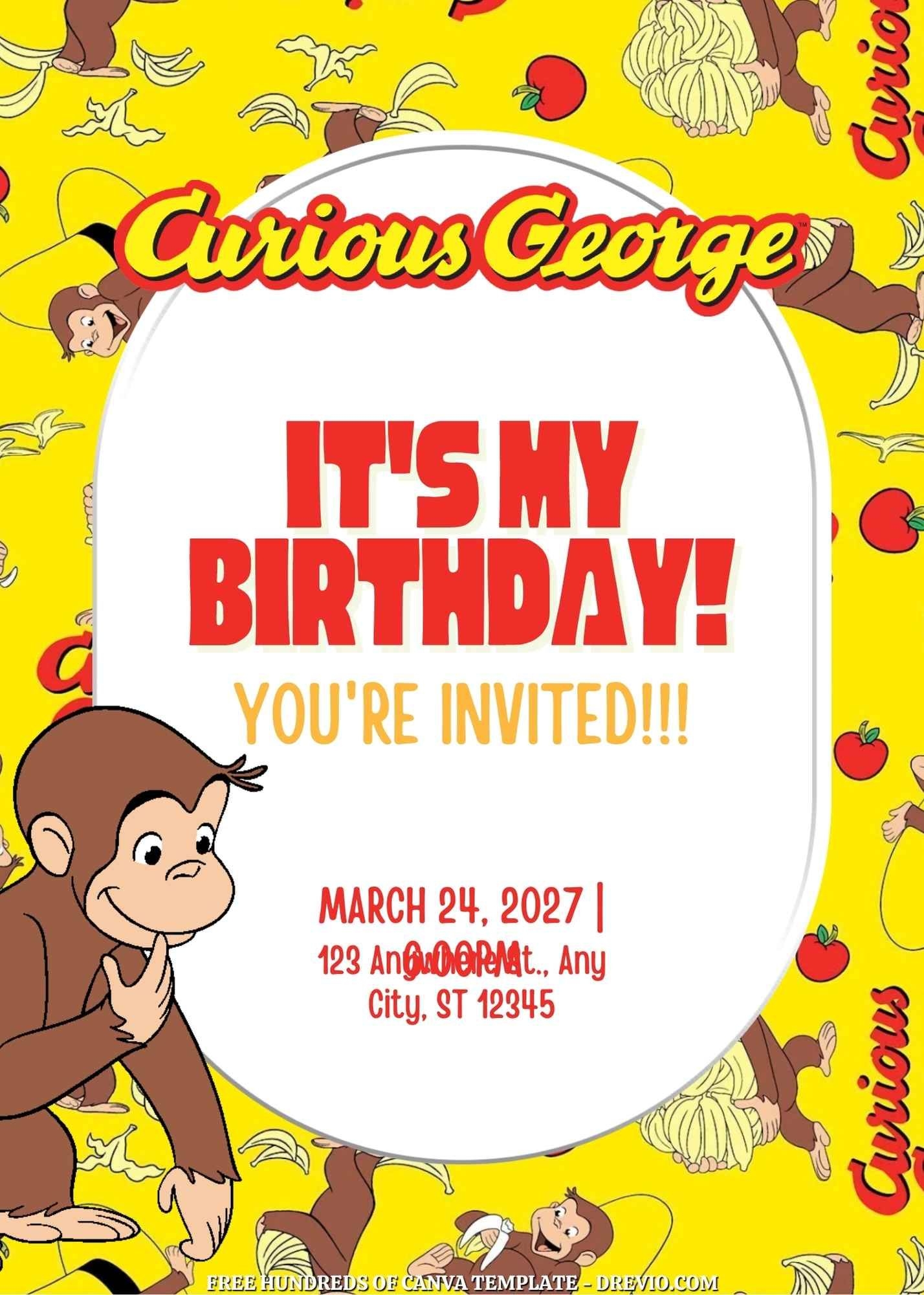 Fortunately, there are many adorable Curious George birthday invitation templates available online that you can customize to suit your party’s theme. These templates often feature cute illustrations of Curious George and his friends, along with space for you to add all the important details of the party, such as the date, time, and location.