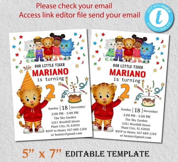 With a little creativity and the help of a cute invitation template, your child’s Daniel Tiger-themed party is sure to be a roaring success!