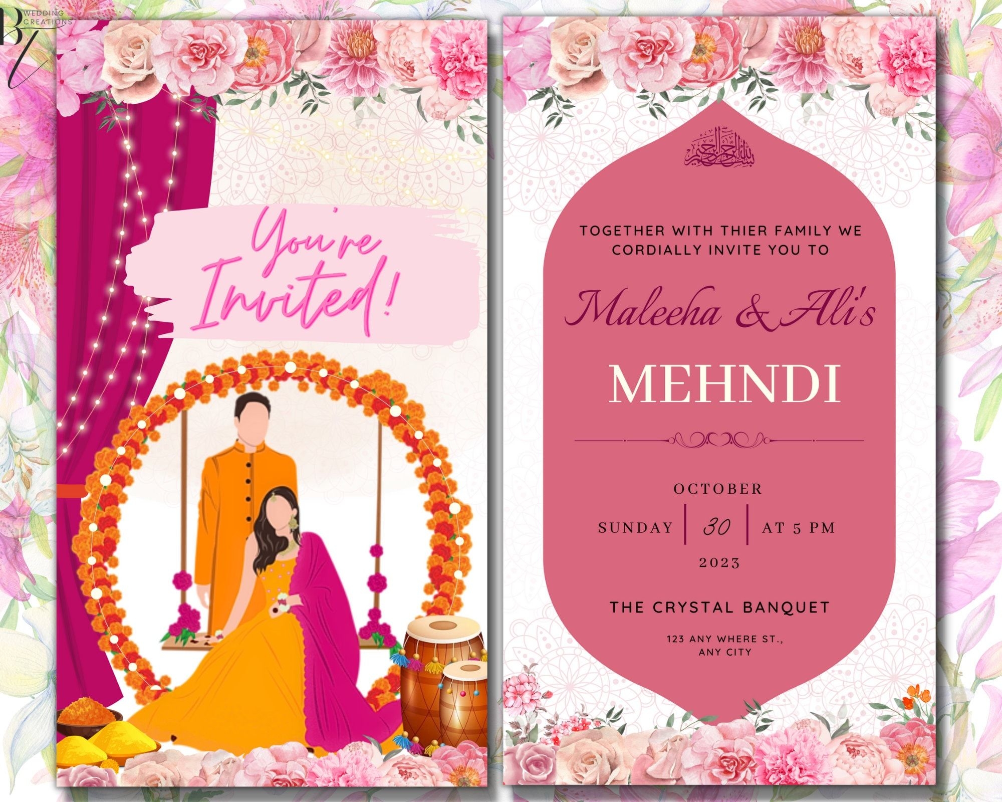 Whether you’re hosting a small, intimate dholki gathering or a grand celebration with all your family and friends, our templates can be tailored to suit the size and scale of your event. From elegant floral designs to colorful and vibrant patterns, we have a variety of options to choose from that will suit any theme or aesthetic.