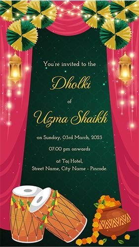 Make your dholki celebration one to remember with a beautiful and personalized invitation created with our free templates. Your guests will be delighted to receive such a thoughtfully designed invitation and will be counting down the days until they can join you in celebrating this joyous occasion. Download your favorite template now and get started on creating the perfect dholki invite!